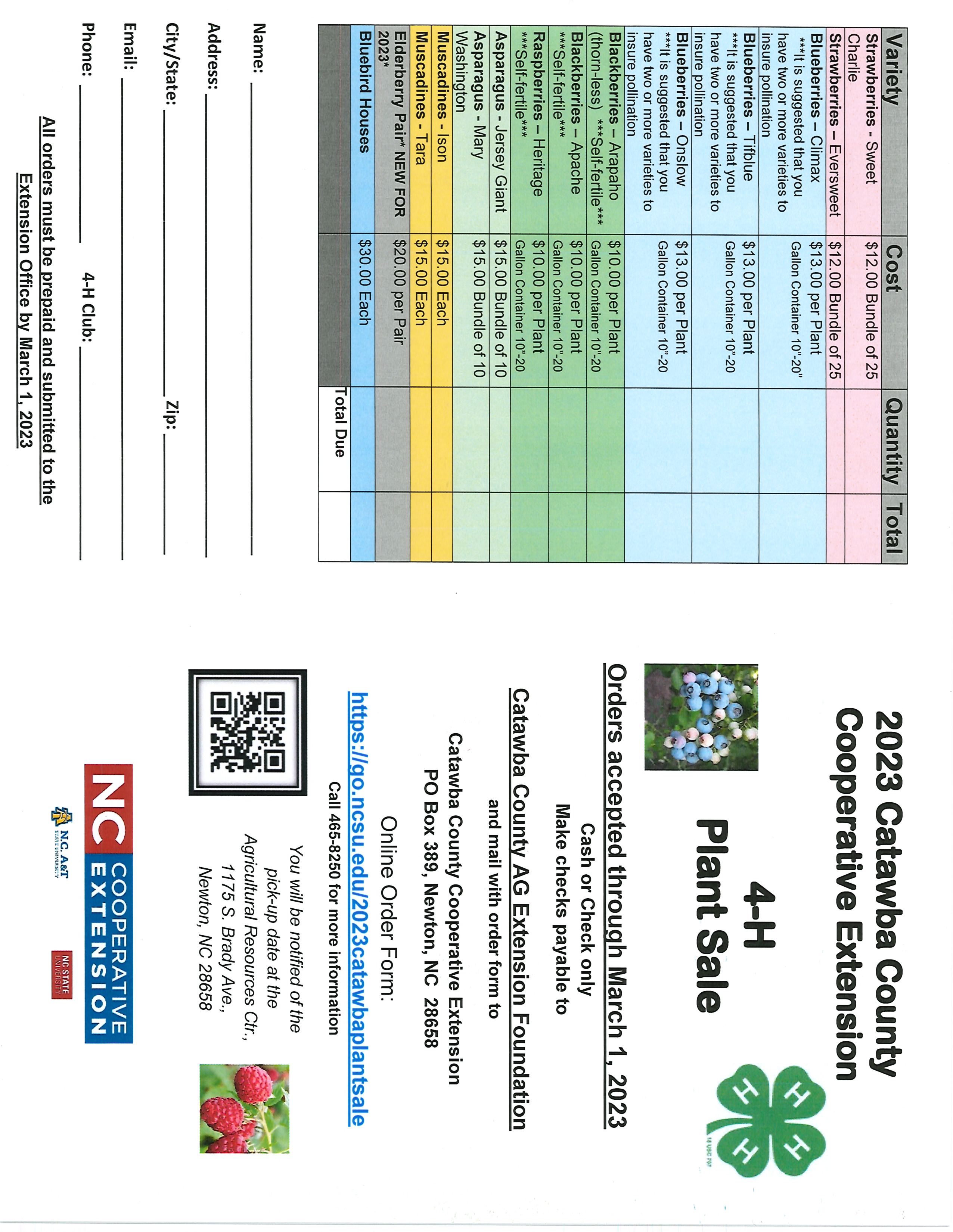 N.C. Cooperative Extension of Yancey County is now taking preorders for various plants and fruit trees to help you prepare for the upcoming planting season.